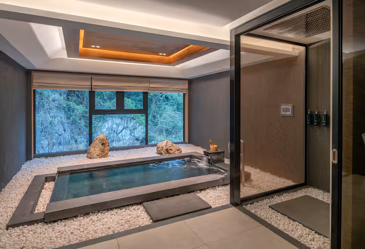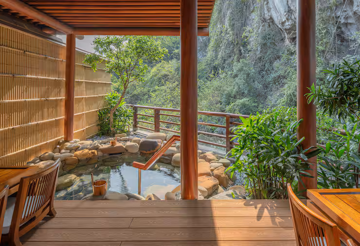 Trải nghiệm đỉnh cao của sự sang trọng trong biệt thự rộng 1250 mét vuông, 5 phòng ngủ này, lớn nhất và đặc biệt nhất trong khách sạn . Mỗi phòng ngủ đều có một phòng riêng, mang đến sự riêng tư và thoải mái chưa từng có. Được bao quanh bởi một Khu vườn Thiền thanh bình, biệt thự có ba hồ bơi đá onsen và một phòng xông hơi khô riêng, tạo ra một khu bảo tồn bình dị để thư giãn và trẻ hóa. Các biệt thự mở rộng khu vực sinh hoạt và ăn uống là lựa chọn hoàn hảo cho các cuộc tụ họp xã hội hoặc phản chiếu yên tĩnh, trong khi một nhà bếp đầy đủ với quầy teppanyaki cho phép bạn thưởng thức ẩm thực tinh tế trong biệt thự. Hệ thống giải trí vô tận đang chờ đón bạn trong phòng giải trí và karaoke chuyên dụng, và WiFi tốc độ cao giúp bạn kết nối. Biệt thự này là sự pha trộn hoàn hảo giữa không gian, sự sang trọng và thanh bình, một nơi nghỉ dưỡng thực sự tuyệt vời. Lưu trú bao gồm sử dụng miễn phí onsen công cộng.